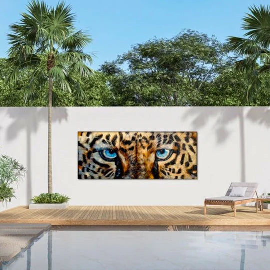 Bringing a wow factor to gardens, the original design, taken from an exclusive giant street art installation by MurWalls, brings to life the beautiful but hauntingly menacing face of the leopard as is stares with cool blue eyes from the portrait.
