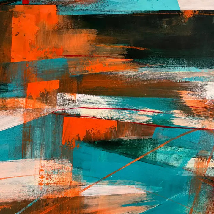 Luana Asiata, the award-winning London-based artist, brings you 'Linear Currents', an exquisite piece of art. This unframed 50 x 50cm acrylic on canvas painting is a testament to Luana's love for abstract shapes, colors, and patterns inspired by nature, architecture, and photography.