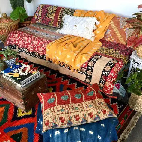 Made from light weight saris , these are perfect as light covers, throws or even picnic blankets. They are completely hand stitched. The saris used in these are newer and brighter. The throws are lightweight.